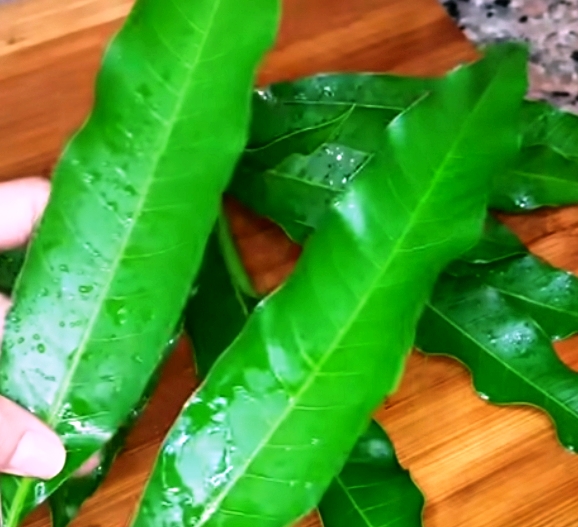 Atencao o ideal é que as folhas da Mangifera e da alfavaca sejam cortadas bem finas para acrescentar ao suco.