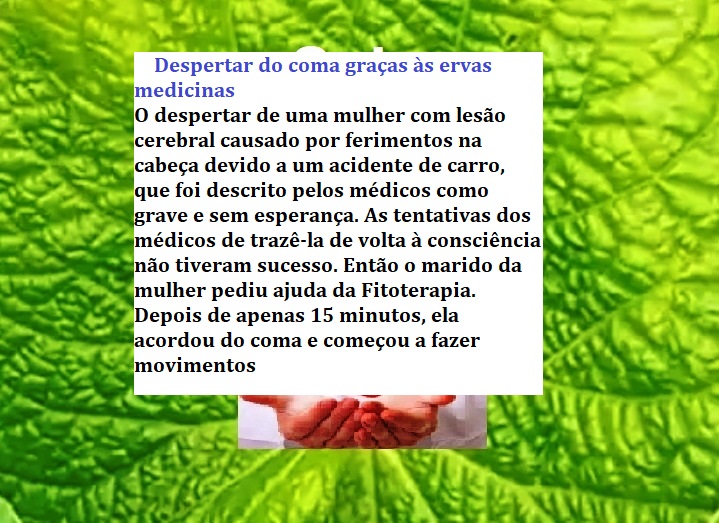 coisa de filme, mas com ajuda da Fitoterapia foi possível. Ela também dependia de outra pessoa para colocar o alimento em sua boca e já consegue se alimentar.